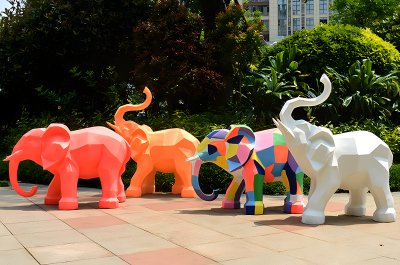 大象雕塑在不同文化中有着不同的寓意。在东方文化中,大象被视为吉祥、和平的象征,常被用于寺庙、宫殿等庄重的场所。它们庞大的身躯与温和的眼神,仿佛在诉说着世间的沧桑与智慧。而在西方文化中,大象则更多地被赋予了力量与坚韧的寓意,成为勇敢者的象征。然而,作为陆地上体型庞大的生物,其雄壮的身躯和稳健的步伐总是让人心生敬畏。在雕塑家的巧手下,大象雕塑更是将这一特性发挥得淋漓尽致。它们或站立如山,气势磅礴;或行走如风,灵动飘逸。每一处细节都经过精心雕琢,无论是皮肤的纹理、肌肉的线条,还是眼神的深邃,都展现出雕塑家的高超技艺和深厚底蕴。